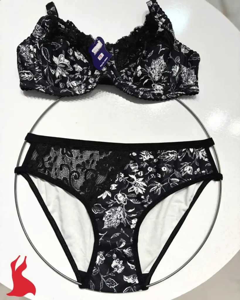 ست شورت و سوتین نخ پنبه سفید مشکی کد 9014