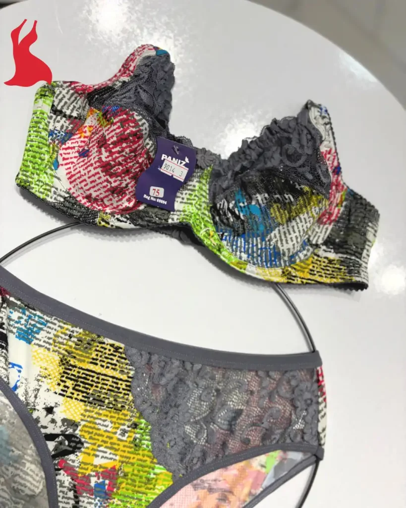 ست شورت سوتین طوسی آبرنگی کد 9014